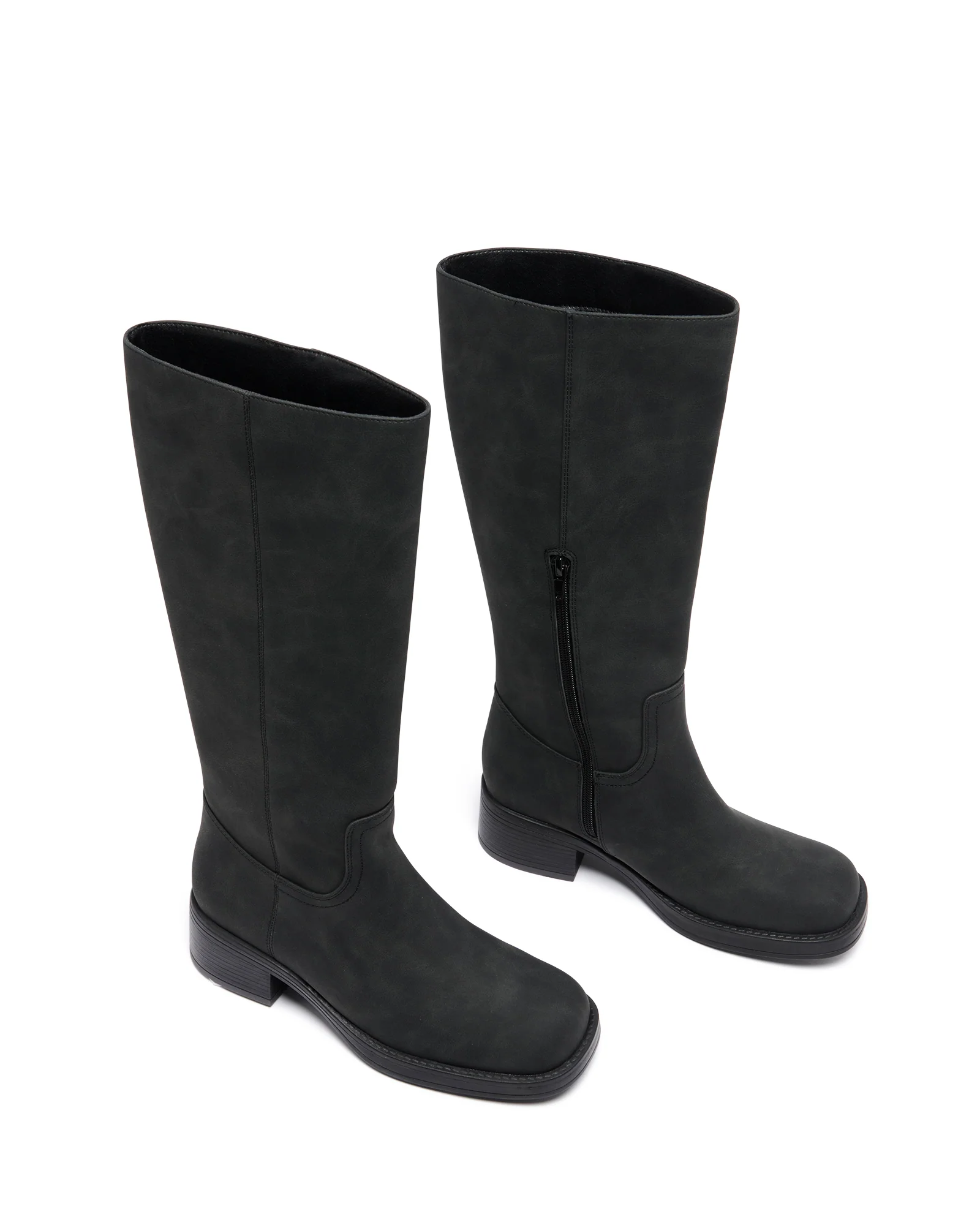 Turn heads this season with Fever, a tall knee-high boot that blends classic structure with bold, fashion-forward details. Featuring a square toe, mid-height inner zip, and a flared block heel with a leather veneer finish, this boot adds instant polish to any outfit.
